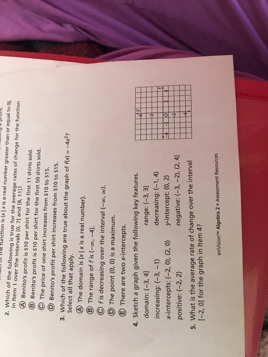 Envision Algebra 1 Assessment Resources Answers